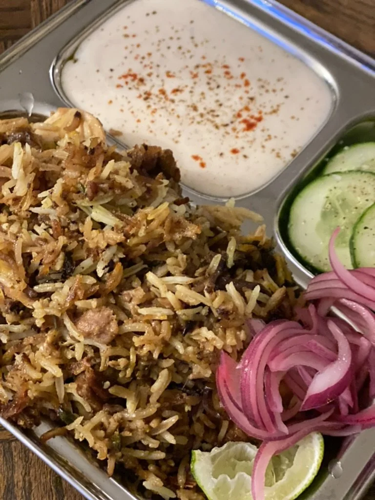 Cucumber raita — a yogurt-based side, with cucumbers and spices